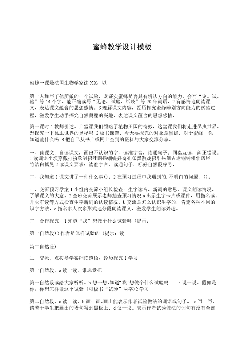 第一课时1教师引述。上堂课我们领略了植物王国的奇妙,这堂课我们将走进昆虫世界。想探究一下昆虫世界的奥秘吗 2板书课题。今天要探究的对象是蜜蜂。对于蜜蜂,你知道些什么吗 3把自己从书上或网上查到的资料与大家交流分享。