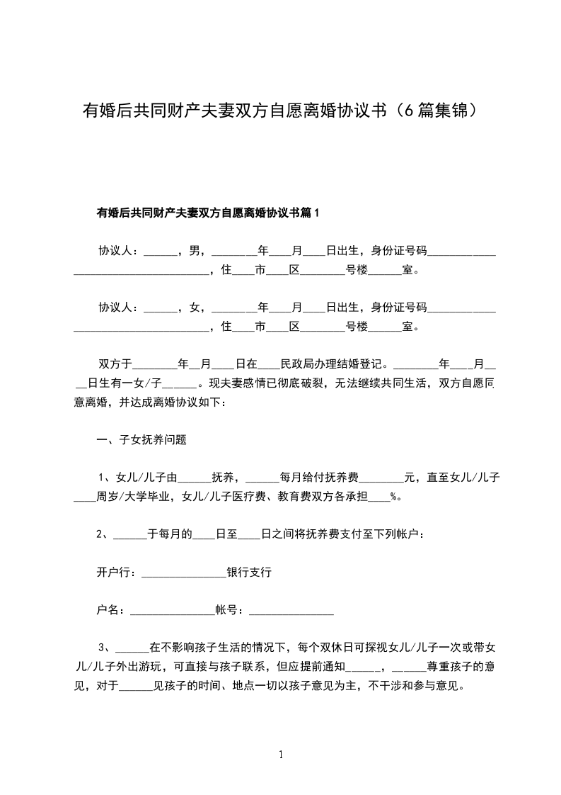 有婚后共同财产夫妻双方自愿离婚协议书篇6