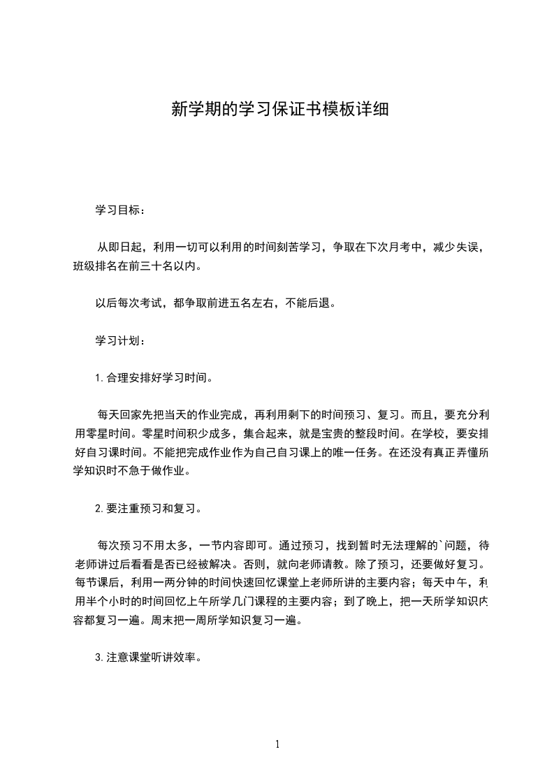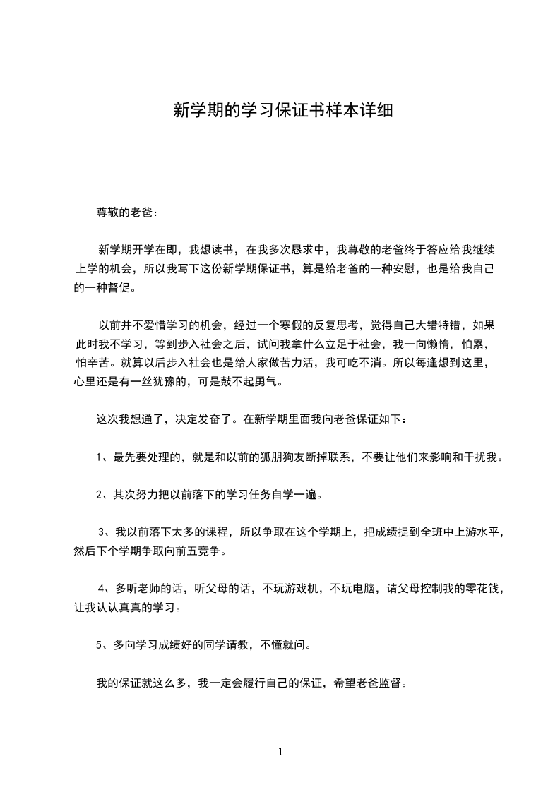 新学期开学在即,我想读书,在我多次恳求中,我尊敬的老爸终于答应给我继续上学的机会,所以我写下这份新学期保证书,算是给老爸的一种安慰,也是给我自己的一种督促。