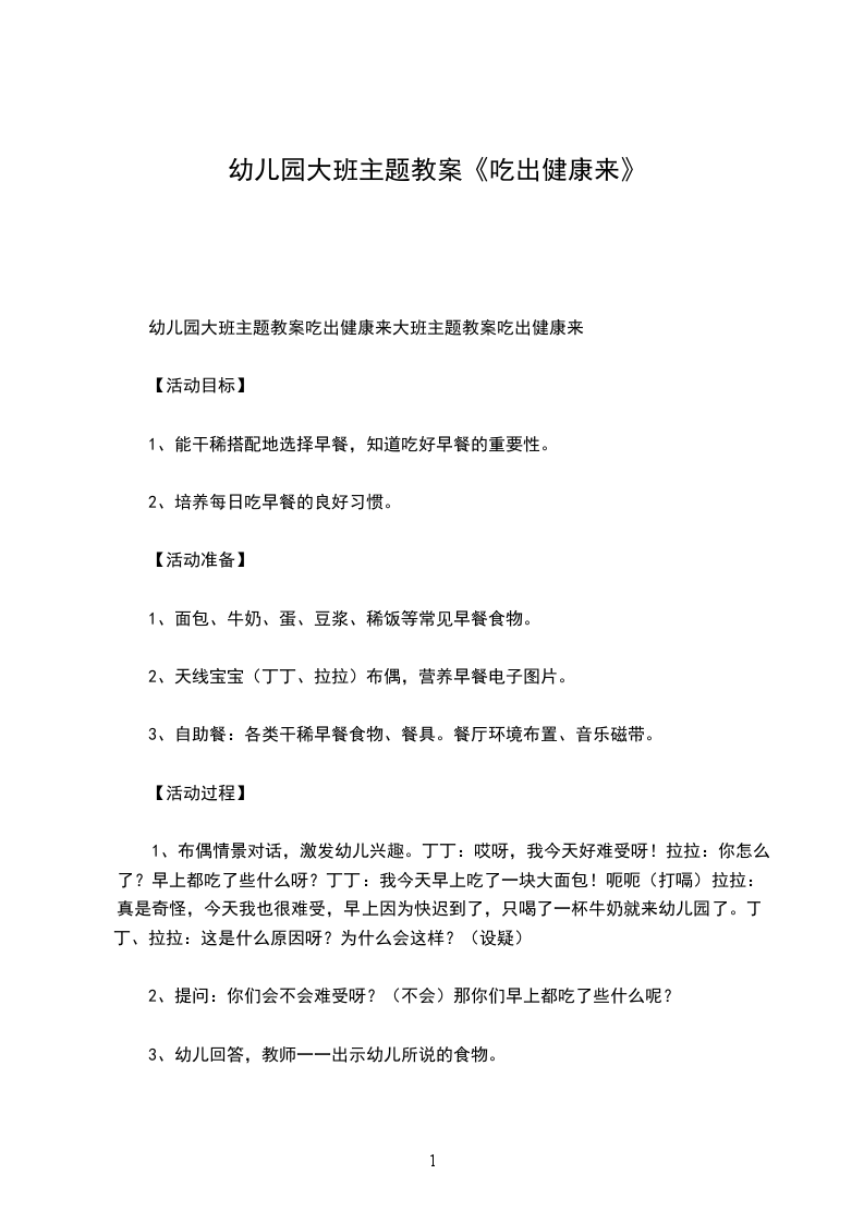 幼儿园大班主题教案吃出健康来大班主题教案吃出健康来