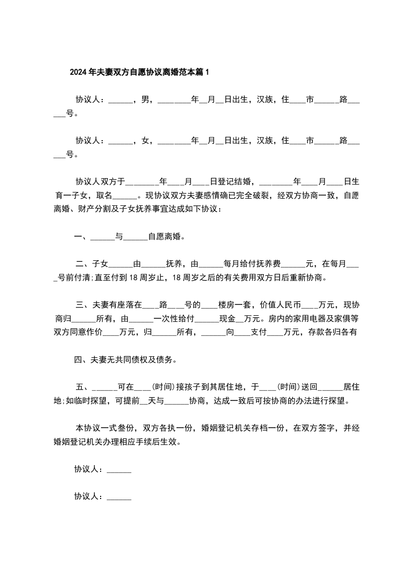 男方与女方于_________年_________月_________日在_________登记结婚。男女双方夫妻感情确已破裂,已无和好可能,双方自愿离婚。经男女双方自愿协商,达成协议如下: