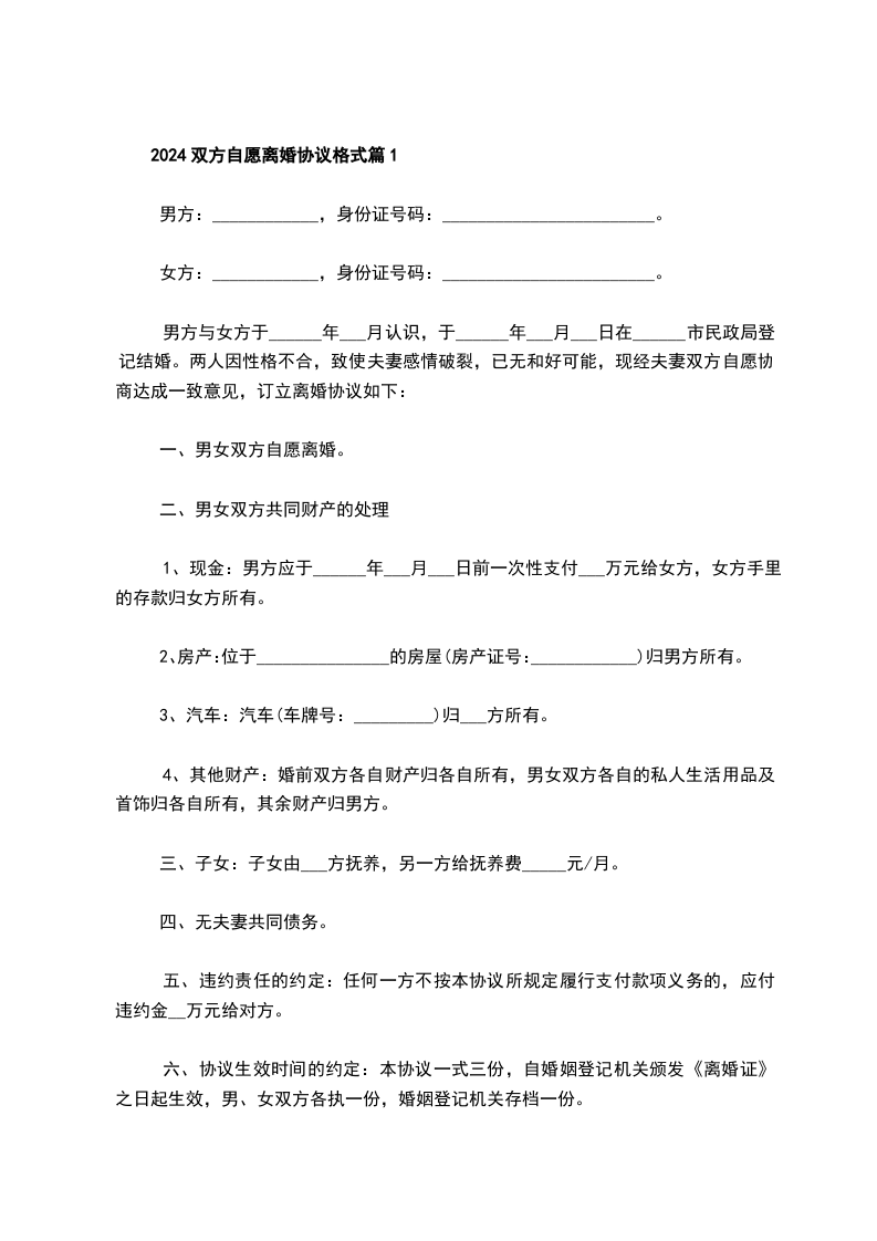 八、本协议一式三份,男、女双方各执一份,婚姻登记机关存档一份。