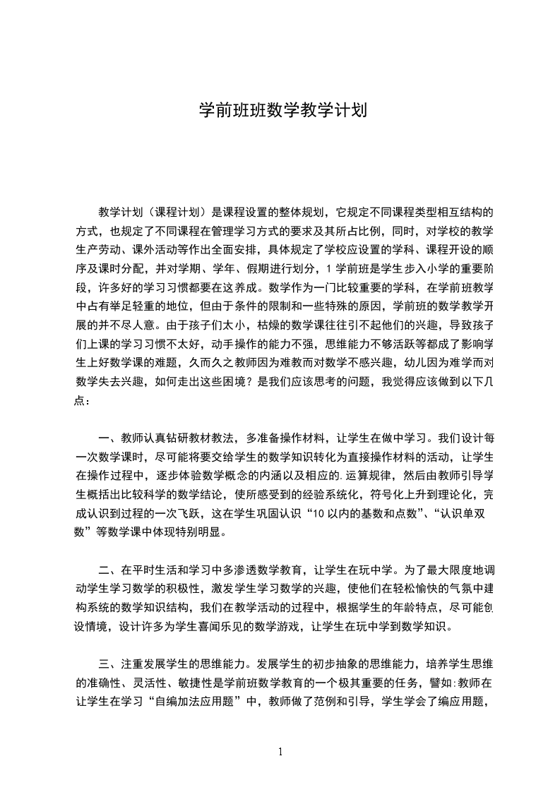 教学计划(课程计划)是课程设置的整体规划,它规定不同课程类型相互结构的方式,也规定了不同课程在管理学习方式的要求及其所占比例,同时,对学校的教学、生产劳动、课外活动等作出全面安排,具体规定了学校应设置的学科、课程开设的顺序及课时分配,并对学期、学年、假期进行划分,1学前班是学生步入小学的重要阶段,许多好的学习习惯都要在这养成。数学作为一门比较重要的学科,在学前班教学中占有举足轻重的地位,但由于条件的限制和一些特殊的原因,学前班的数学教学开展的并不尽人意。由于孩子们太小,枯燥的数学课往往引不起他们的兴趣,导致孩子们上课的学习习惯不太好,动手操作的能力不强,思维能力不够活跃等都成了影响学生上好数学课的难题,久而久之教师因为难教而对数学不感兴趣,幼儿因为难学而对数学失去兴趣,如何走出这些困境?是我们应该思考的问题,我觉得应该做到以下几点: