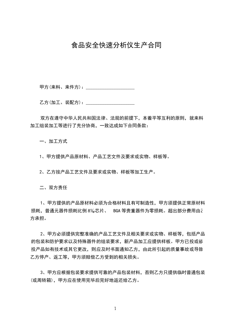 1、甲方在合同期内按计划不定期委托乙方为其加工甲方加工产品所用的__________________。