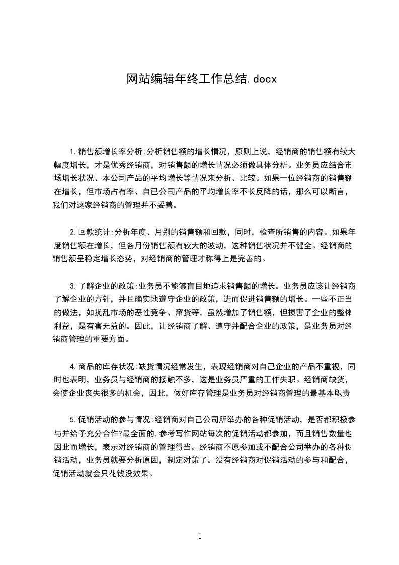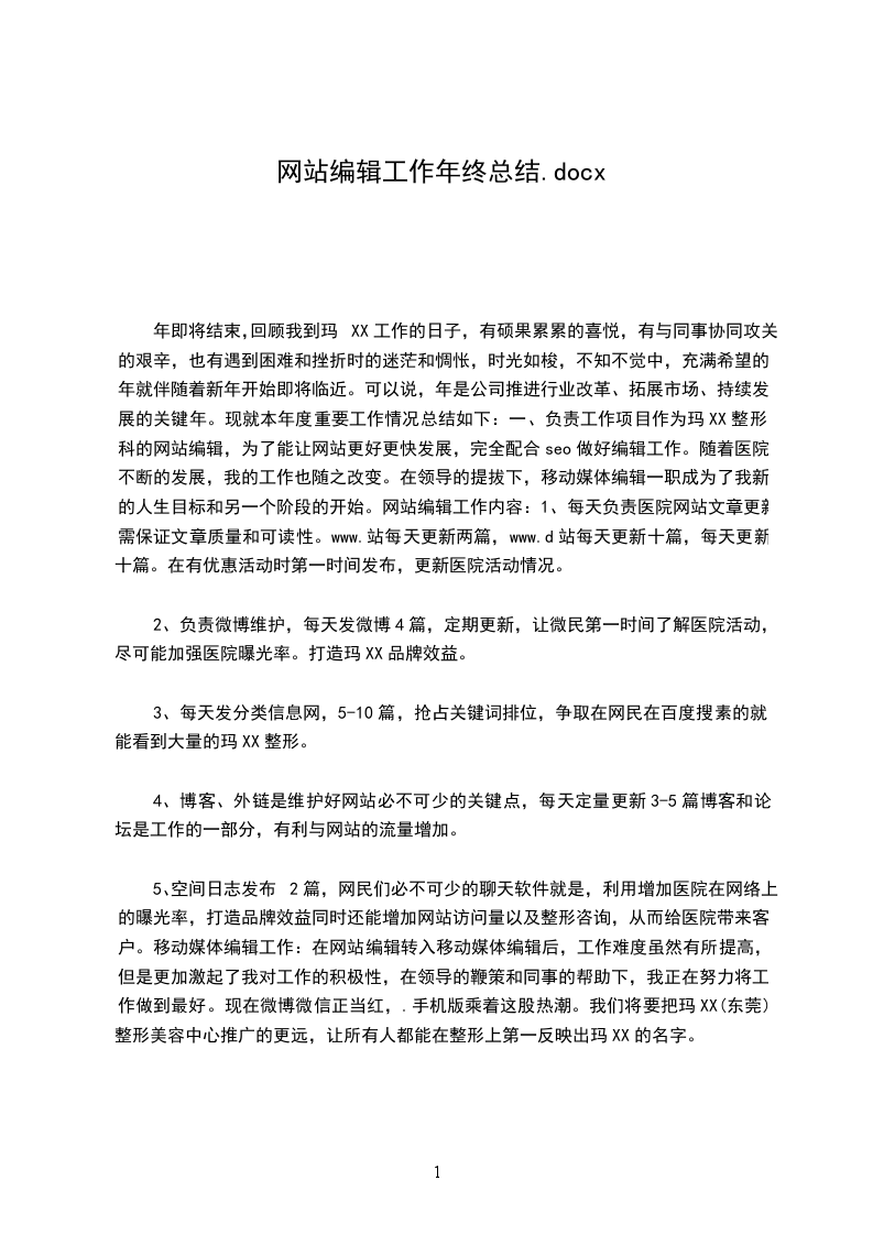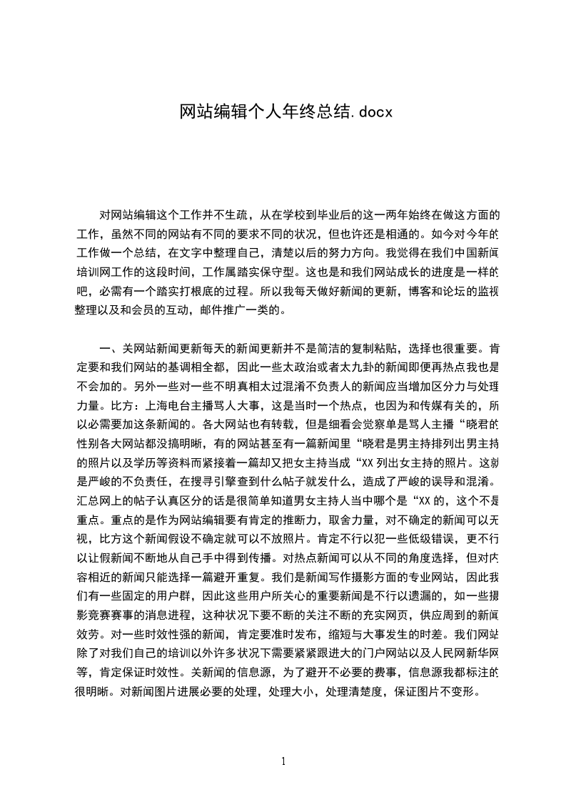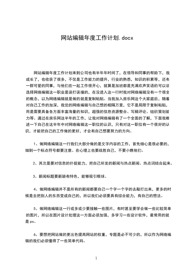 (3)关推广在做好邮件推广的同时,我盼望今后自己也多做一些搜寻引擎的推广群组的推广,也要多去一些相关的活泼社区。总之过去的工作比较踏实保守,盼望以后的自己通过努力可以有一个好的进步,不管是文字、编辑还是技术上都能有很大的提升,可以渐渐的成长为一名高级网站编辑,更好的为网站效劳。最终盼望我们的公司、网站能越办越好,新的一年有新的成长有新的成果。网站编辑