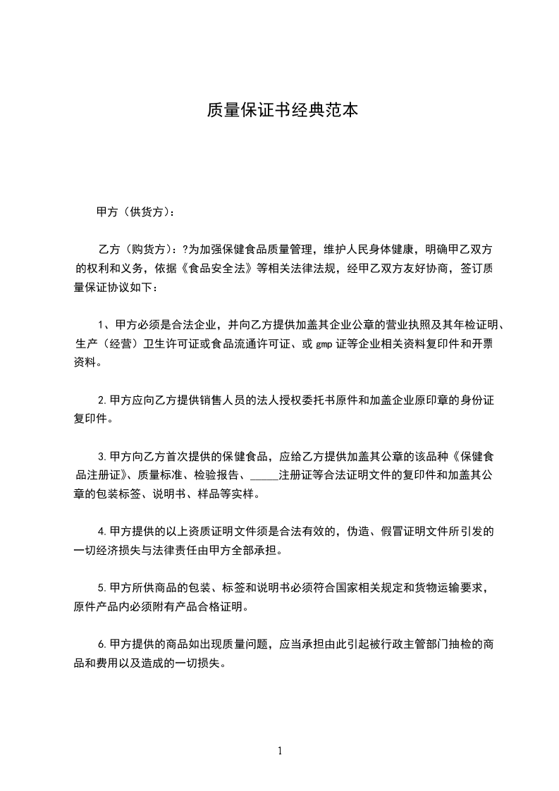 为保证产品质量,明确购销双方产品质量责任,确保产品质量合格,保证产品安全、特作如下保证: