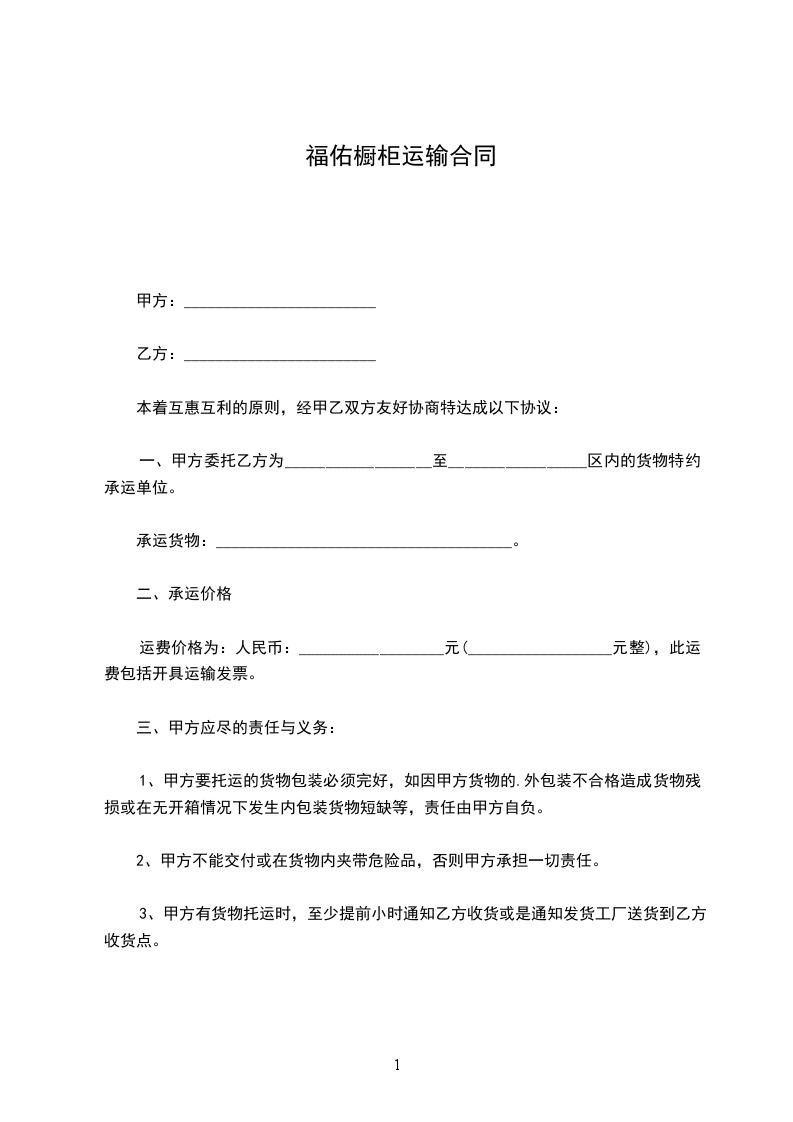 七、甲方责任:托运货物必须合法,物权清楚,与合同签定的货物相符。