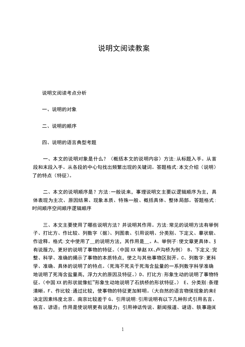一、本文的说明对象是什么?(概括本文的说明内容)方法:从标题入手。从首段和末段入手。从各段的中心句找出频繁出现的关键词。答题格式:本文介绍(说明)了的特点(特征)。