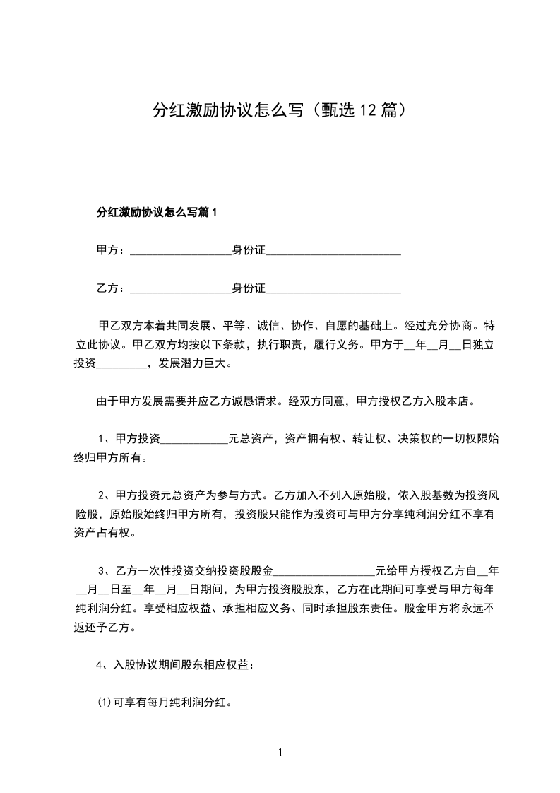分红激励协议怎么写篇12