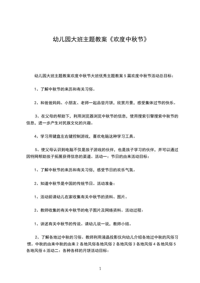 幼儿园大班主题教案欢度中秋节大班优秀主题教案5篇欢度中秋节活动总目标: