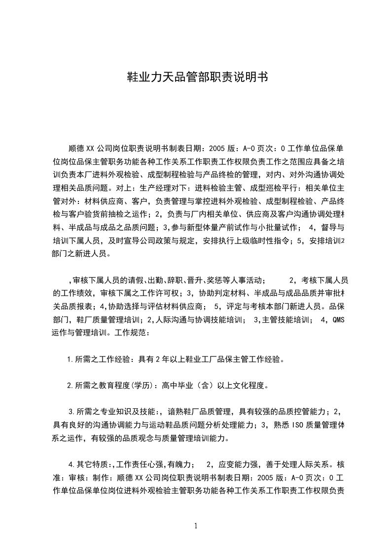 (3)拔楦后段:塞纸烘线头穿鞋带鞋面清洁大底清洁修鞋面是主要工序的作业标准:序号流程操作方法作业标准1后跟定型热模定型将鞋套后跟对正先在定型机的上加热时胶融化,再放在冷模上温度:热模温度100C,时间于冷漠温度0C,时间30秒2尺甘+4+H穿鞋带、放垫片将鞋带穿好,在鞋舌上放入垫片,以免损坏帮面鞋带要系紧,鞋身处须贴紧楦头且不能起皱3配楦、配中底准备好合适的楦头跟中底板中底板上要有网布,增加粘和强度4楦头、中底刷白胶用白胶在楦底、中底周围刷一圈白胶不能多刷亦不能少刷5过烘烤箱设定烤箱温度为623分钟。根据鞋子的材质调整烤箱温度6攀前帮、拉腰帮、攀后帮用前帮机使前帮脚与中底粘合,用手工固定腰窝,最后用后帮机固定后跟攀帮前要确保鞋身是正的,攀帮的力度要适中,还要保证两只鞋的后跟高度相同7上、下加硫将大底和鞋帮放入硫化箱内,时间为54分钟13一次刷胶用糊刷粘上适量的胶对大底内和鞋面画线内均匀的来回刷胶根据鞋材选择适合的胶,不可乱用,否则达不到较好的胶粘强度。脚不能溢出大底边缘和鞋面画线以外14烘干活化刷好胶后大底、鞋面配双分别放入烤箱的上、下鞋面温度:653C,大底温度553C,时间34分钟17贴底手工操作,鞋帮与大底贴合。沿胶线贴合,鞋底、鞋面中心点要正对,后跟不能有歪斜,不能过高或过低18万能压用万能压底机压合鞋帮和大底压底,时间84分钟,温度2)摄氏度冷冻箱的温度和时间要控制得当,否则鞋子达不到预期的定型效果于取出鞋子,接开鞋带,将楦拔出动作要轻柔,不可弄破鞋面21塞鞋垫在鞋垫反面均匀的刷一层胶塞入鞋内鞋垫要塞到位且不得皱起22塞纸将纸揉成类鞋头形状,塞入鞋内纸团形状正确,塞纸要到位。塞纸后鞋面要平顺,不可有突起现象23烘线头将多余的线头清理干净不可弄伤鞋面24穿鞋带按照外压内的方式穿鞋带不可穿错,鞋带要穿的整齐,不可拧着25清洗鞋面、大底用清洁水清洗鞋面,并用生胶块将鞋面、大底上的胶清洗干净不可用力过猛,不能出现鞋面色变的现象26修鞋检查鞋子是否存在色差,是否清洗十净,疋否有歪斜的现象,疋否出现开胶等问题确保鞋子无以上问题方可进行包装2.5检验当鞋做成成品鞋后,需对鞋子进行检验。检验的方向是鞋面是否整洁,鞋帮面各部件缝合是否正确,有无歪斜状况,裁断、针车和成型过程中是否对鞋面造成伤残,缝线有无断线、浮线、重线等现象,鞋面有无起鼓、起皱、溢胶、色差等现象。在成型合底时大底和鞋帮是否完全贴合,是否出现溢胶现象,鞋带穿插是否正确,是否按照内压外的形式。如出现问题,应立即进行更改整饰或更换。3总结本款鞋的设计构想源自运动休闲鞋。这款休闲皮鞋在那的基础上,本着有繁入简的思想,在材料和一些零部件上加以修改,工艺简单。这款鞋有多处部件间的相接采用压茬法,这不仅省料,而且粗犷却不失稳重。鞋子整体的色调偏暗,由黑到土黑再到土黄,循序渐进,相得益彰,使之更富有复古的意味。然而这款鞋也存在很多的不足。鞋子有明显的缝线问题,而且鞋面色调、材料单一,这使得鞋子整体感官上略显沉闷、呆板,这无疑使得这款鞋在喜欢挑逗、潮流、新颖的年轻人市场上逊色于色彩丰满的鞋。后跟的饰件由于考虑不周全,使得鞋子成型后后跟的人的图形不能很好的凸显。男鞋饰件的发展趋势,主要是变化面料材质和线条,讲究简洁、大方、舒适。这款男式休闲鞋若在鞋面材质上稍作改动,赋予其活力,再加上简单柔顺的装饰线,其市场前景可能会更可观。