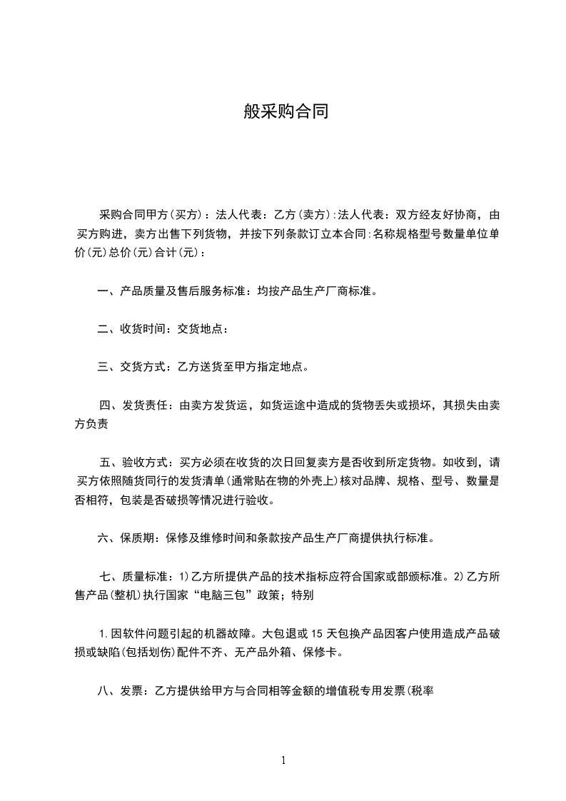 采购合同甲方(买方):法人代表:乙方(卖方):法人代表:双方经友好协商,由买方购进,卖方出售下列货物,并按下列条款订立本合同:名称规格型号数量单位单价(元)总价(元)合计(元):