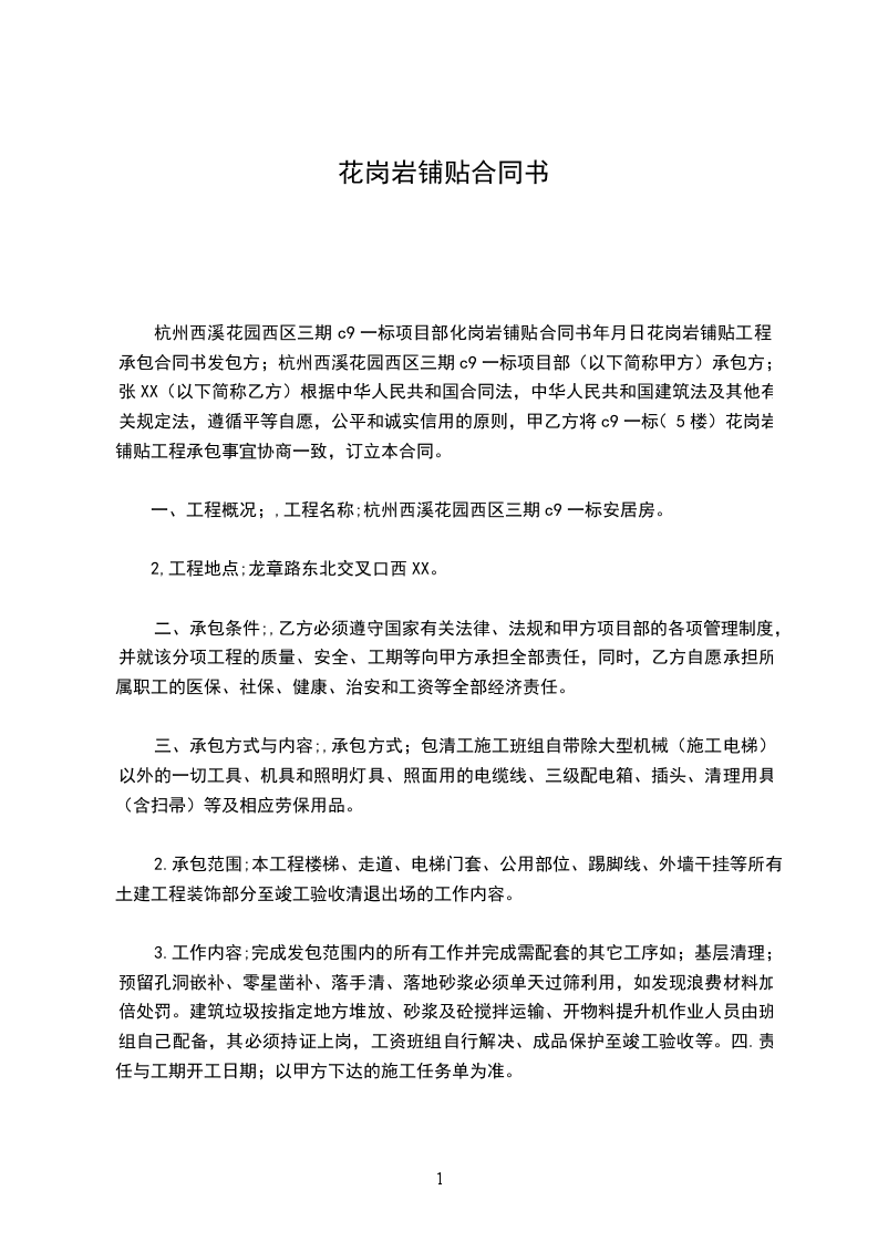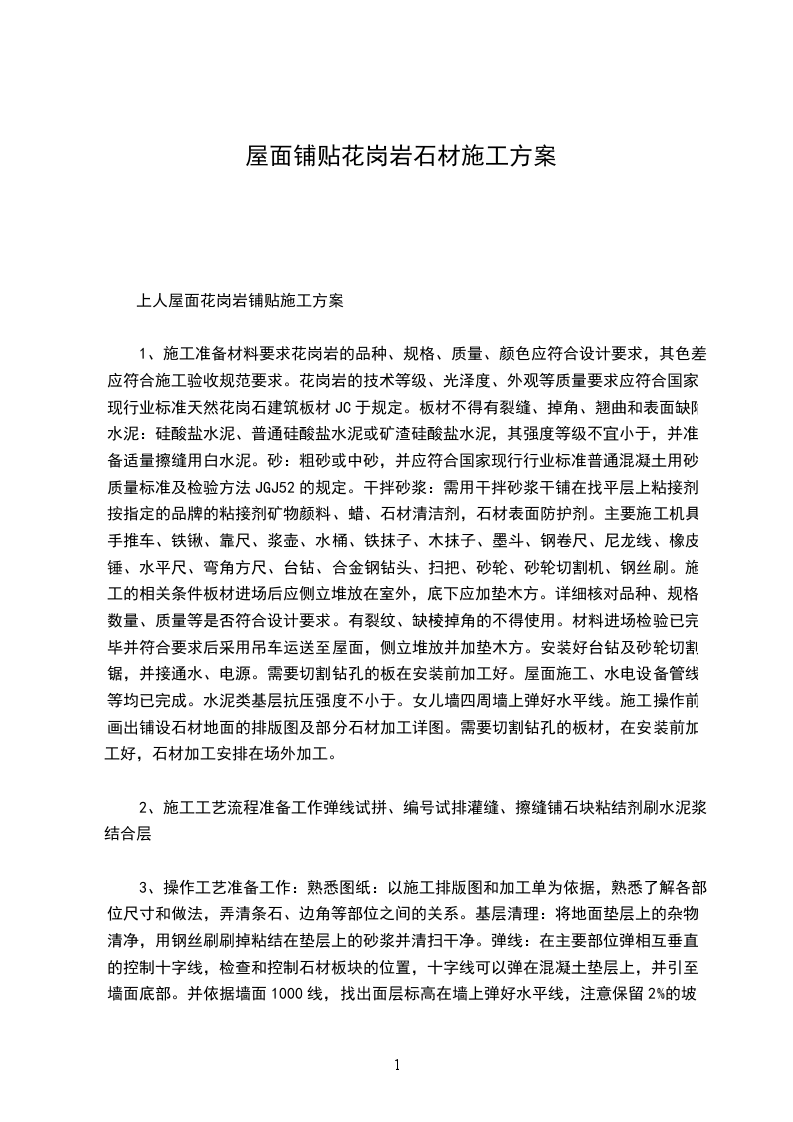 上人屋面花岗岩铺贴施工方案