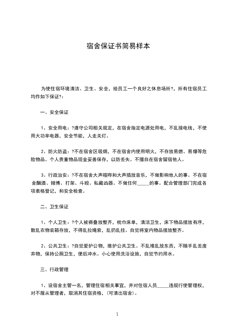 为使住宿环境清洁、卫生、安全,给员工一个良好之休息场所?,所有住宿员工均作如下保证?: