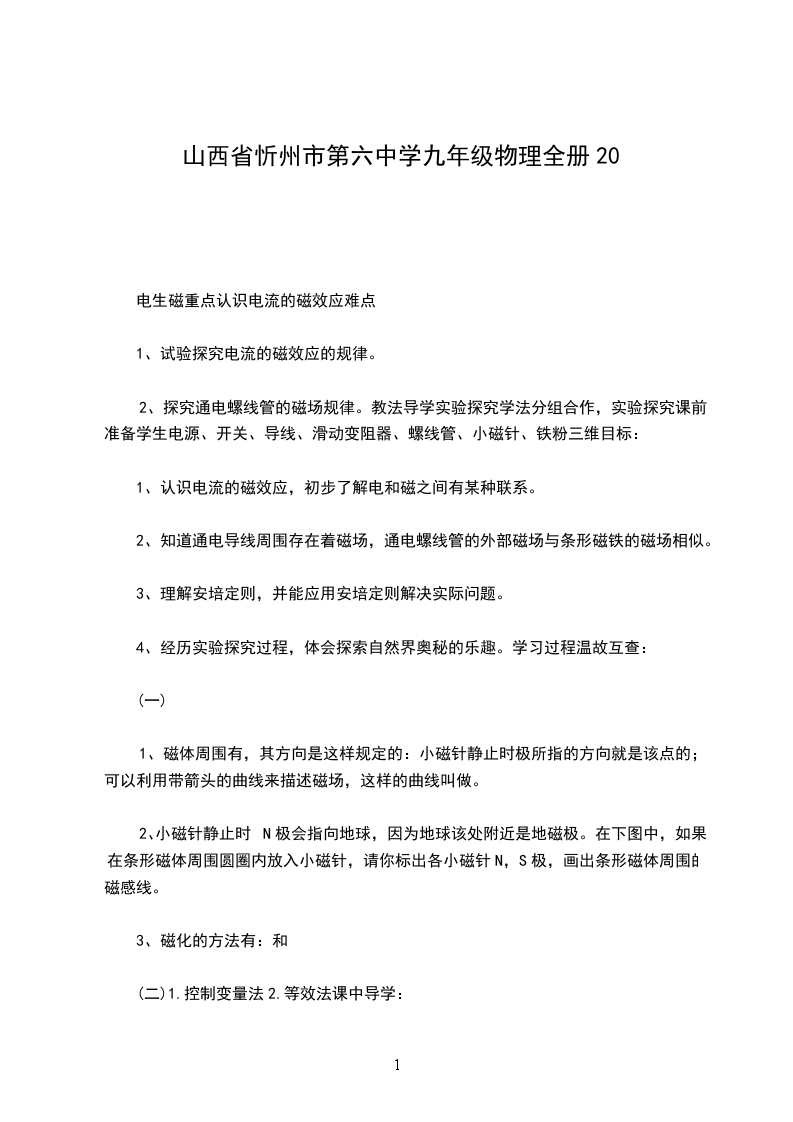 1、认识电流的磁效应,初步了解电和磁之间有某种联系。