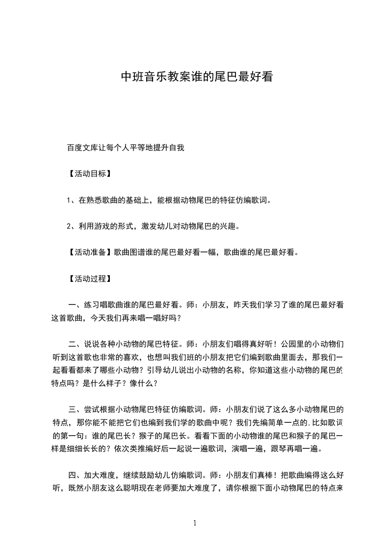 一、练习唱歌曲谁的尾巴最好看。师:小朋友,昨天我们学习了谁的尾巴最好看这首歌曲,今天我们再来唱一唱好吗?