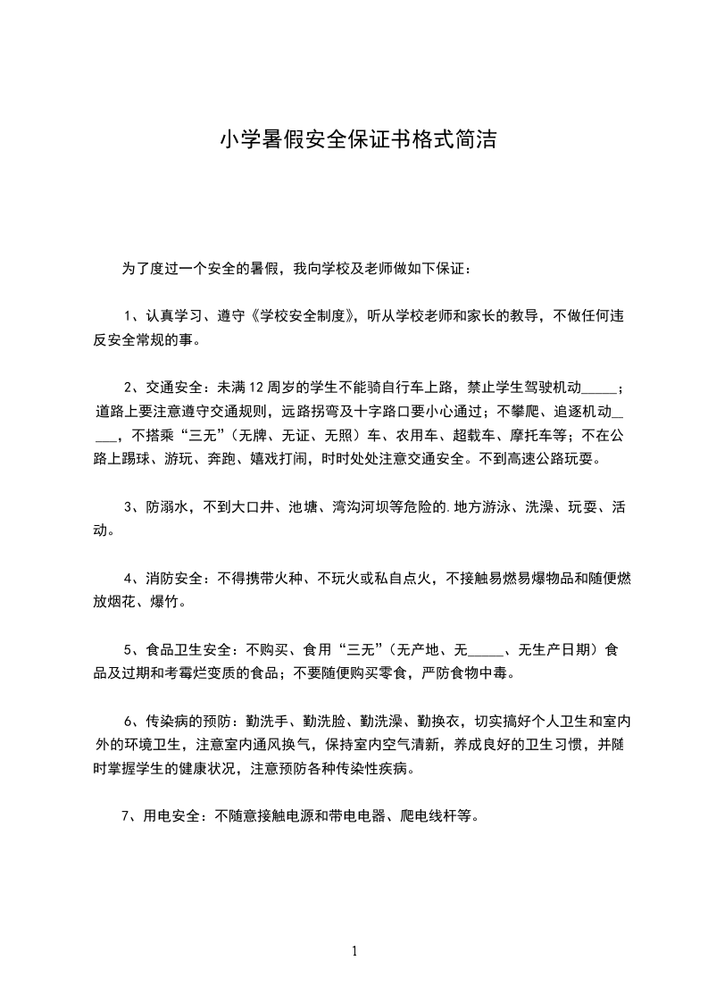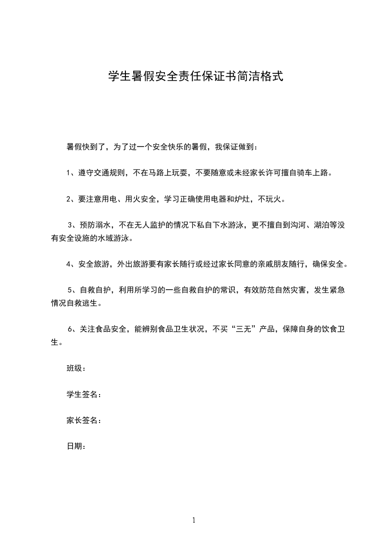 为了度过一个安全的暑假,我向学校及老师做如下保证:
