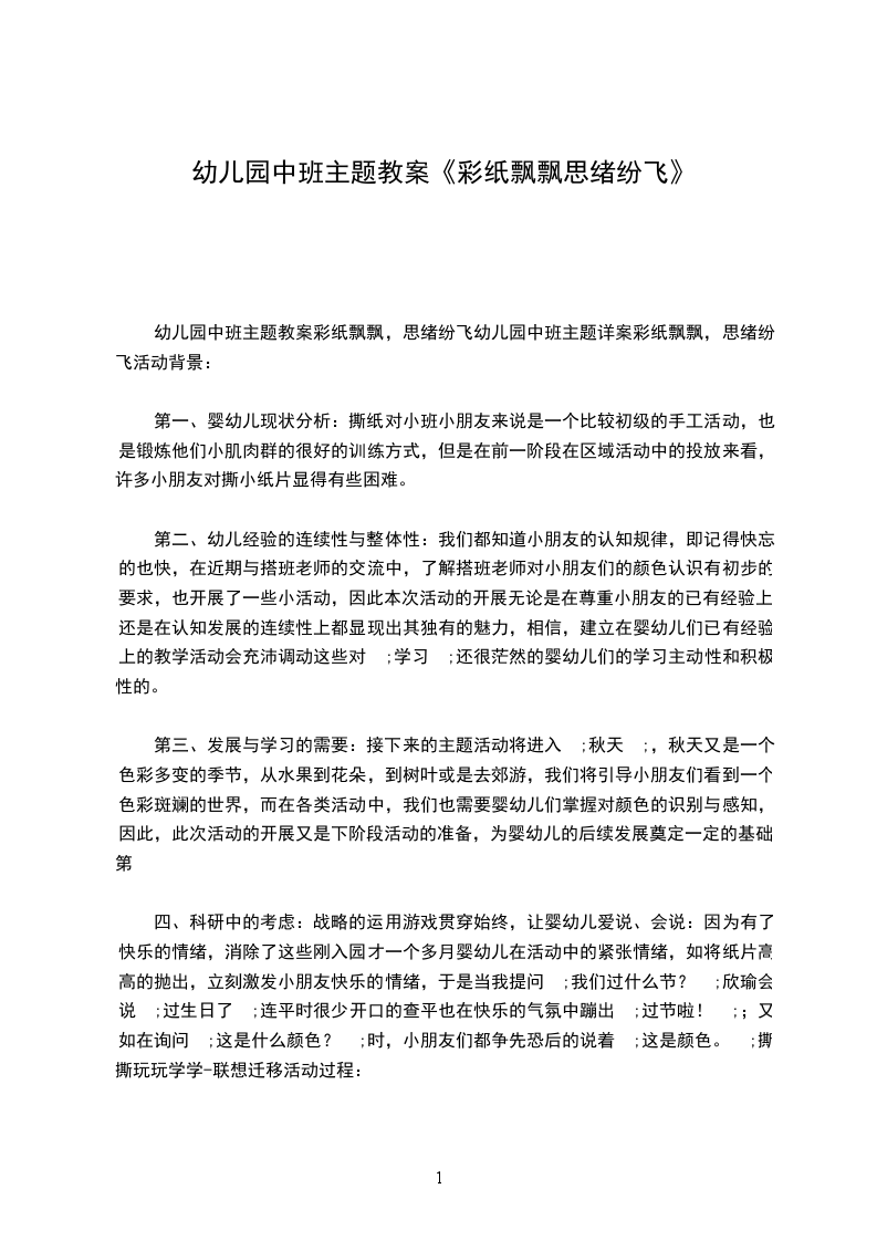 幼儿园中班主题教案彩纸飘飘,思绪纷飞幼儿园中班主题详案彩纸飘飘,思绪纷飞活动背景: