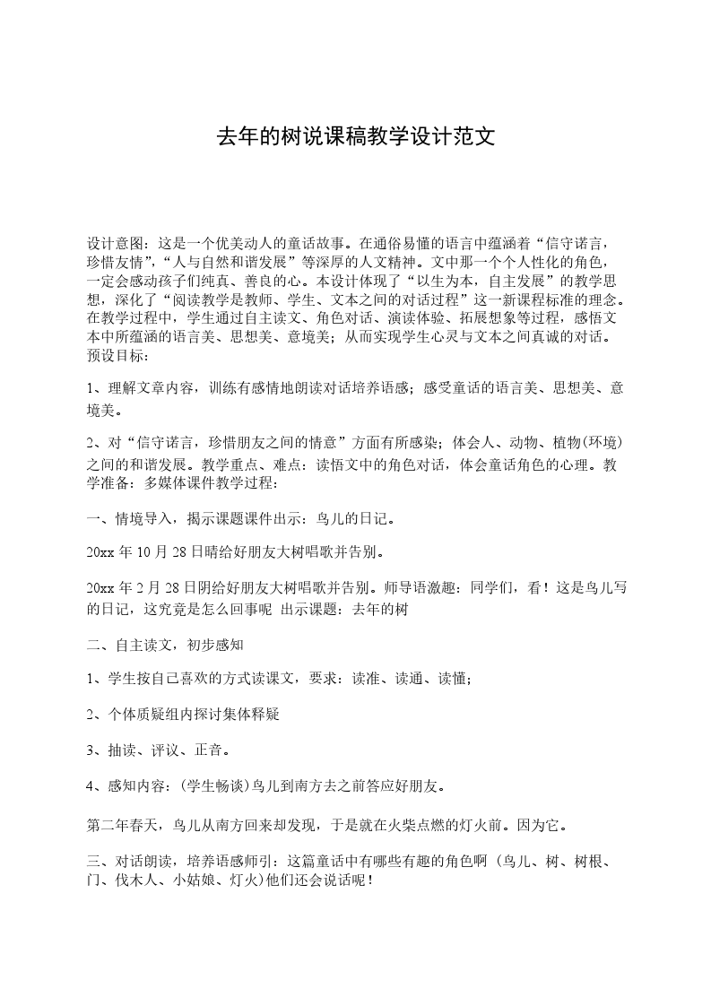20xx年2月28日阴给好朋友大树唱歌并告别。师导语激趣:同学们,看!这是鸟儿写的日记,这究竟是怎么回事呢 出示课题:去年的树