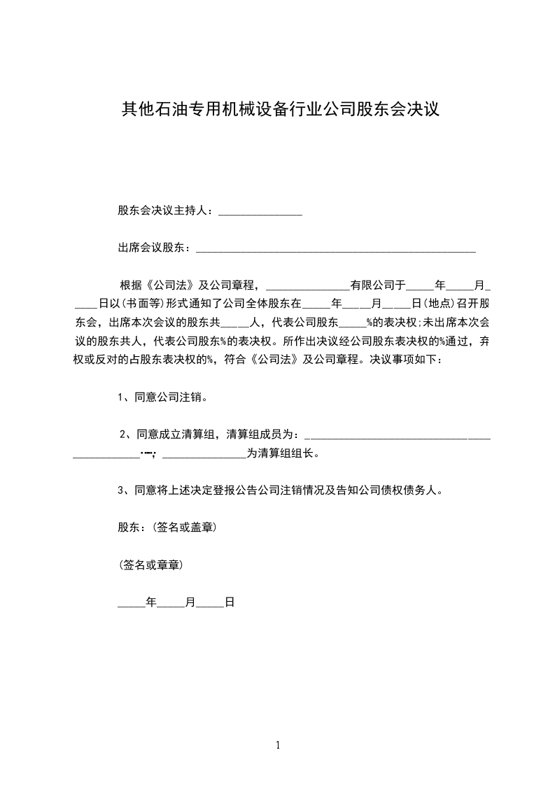 股东会决议主持人:_______________