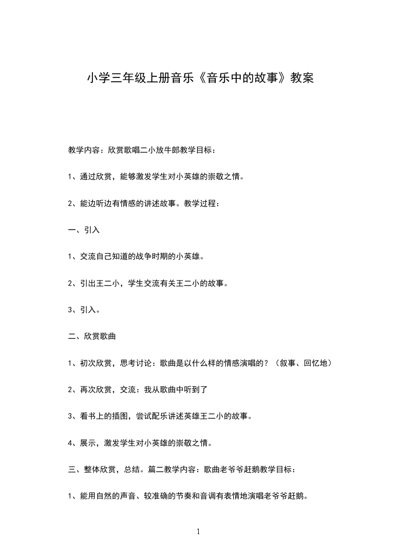 三、整体欣赏,总结。篇二教学内容:歌曲老爷爷赶鹅教学目标: