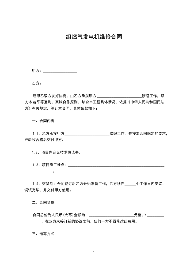 1.1、乙方承接甲方________________________修理工作。并按本合同规定的要求,经验收合格后交付甲方。
