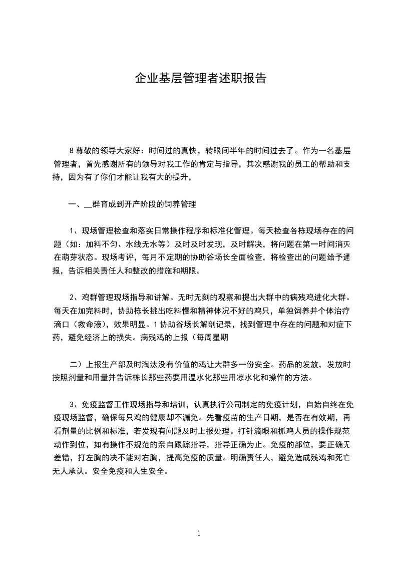 3、做好冲洗鸡舍的工作。6总之:在本批鸡因管理不到位,使鸡群共发病两次,使公司经济受到很大的损失,在日后的工作中做好每一事情,杜绝二次犯错,因为我是大成人,成长在大成这个大家庭中,我相信大成明天会更美好。