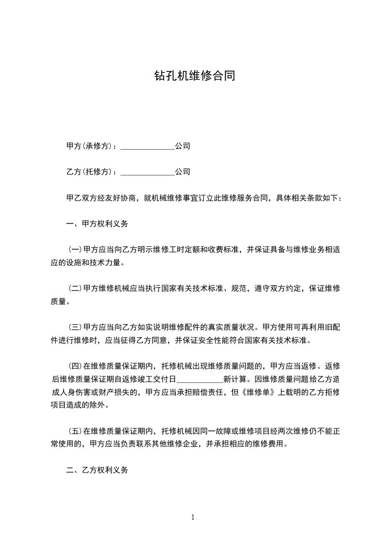 (二)甲方维修机械应当执行国家有关技术标准、规范,遵守双方约定,保证维修质量。
