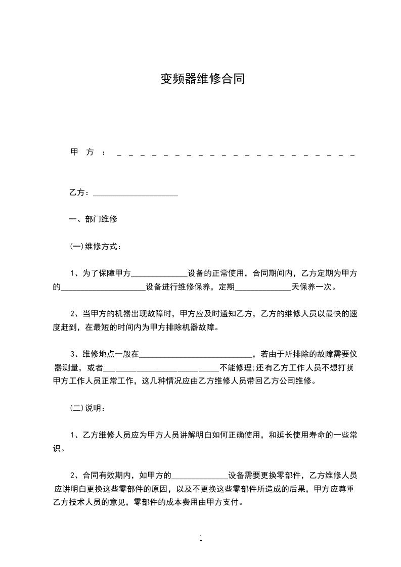 2、(1)协议签定起_______个工作日内,甲方向乙方支付保养维修费50%;