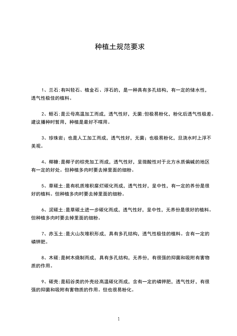 11、常见种植物土就是农树土地里没经过人工改造过的土壤。为了更好的满足现常使用,根据种植物要求建议合理化的人工改造。为了改良土壤弥补绿地土壤肥力不足,使植物恢复生长后能尽快见效需要对植物施足基肥。按照要求,可以选用经跳的过磷酸钙加上饯的尿素堆讴旦充分腐熟后的堆抠蘑菇肥或木屑作为土壤基肥使用,草坪及花坛用量在10KG/M左右,施肥后应进行1次约30cM深的翻耕,使肥与土充分混匀,做到肥土相融,起到既提高土壤养分,乂使土壤疏松、通气良好的作用。合成土质量要求: