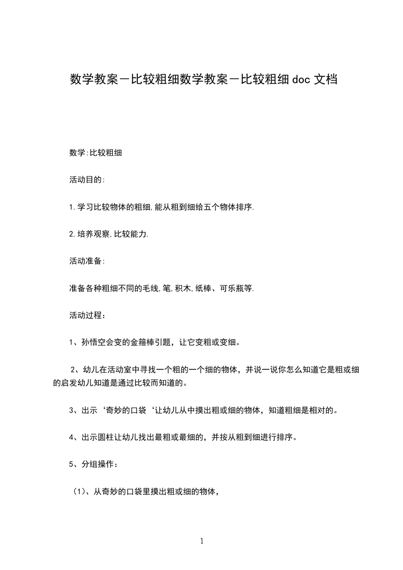 七、作业运用已学的知识,找身边熟识的事物比一比,说一说。推荐阅读:幼儿园大班数学教案:找座位学前班健康教案粗粮小吃店学前班健康活动教案:我长大了