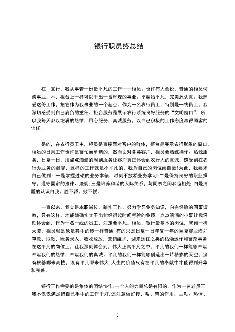 工作汇报/工作计划/银行工作总结姓名:_单位:_日期:_编号:YB-ZJ-048115于银行职员年终总结模板于bankemployeeyearendsummarytemplate于银行职员年终总结模板20__年是XX发展史上浓墨重彩的一年,XX成功迈出了股份制改革的
