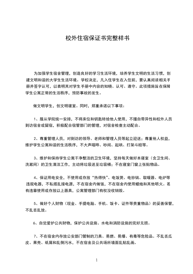 1、外宿生保证遵守国家的各项法律法规,遵守《学生手册》的各项要求,遵守学校制定的各项校纪校规。