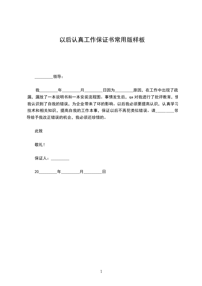 我_________年_________月_________日因为_________原因,在工作中出现了疏漏,漏放了一本说明书和一本安装流程图。事情发生后,qa对我进行了批评教育,使我认识到了自我的错误,为企业带来了坏的影响。以后我必须要提高认识,认真学习技术和相关知识,提高自我的工作本事,保证以后不再犯类似错误。请_________领导给予我改正错误的机会,我必须还珍惜的。