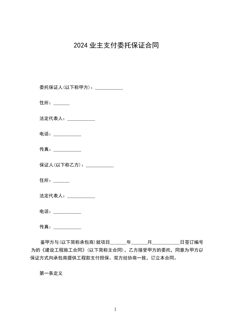 鉴于乙方与丙方就 项目于 年 月 日签订编号为 号《建设工程施工合同》(以下简称主合同),甲方接受丙方的委托,同意以保证的方式为丙方向乙方提供业主支付担保,甲乙丙三方经协商一致,订立本合同。