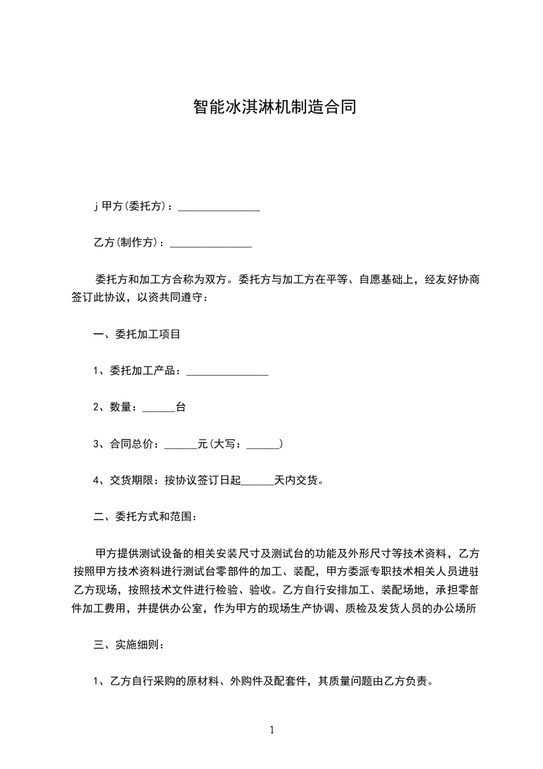 二、甲以本协议为基准,把协议规定的产品托给乙生产,乙接受此托,并保证将合格产品提供给甲。