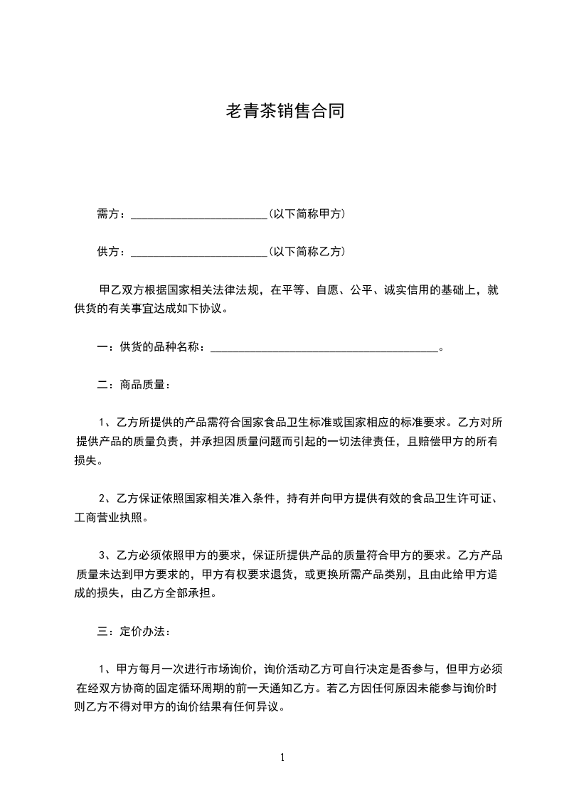 1、甲方每月一次进行市场询价,询价活动乙方可自行决定是否参与,但甲方必须在经双方协商的固定循环周期的前一天通知乙方。若乙方因任何原因未能参与询价时,则乙方不得对甲方的询价结果有任何异议。
