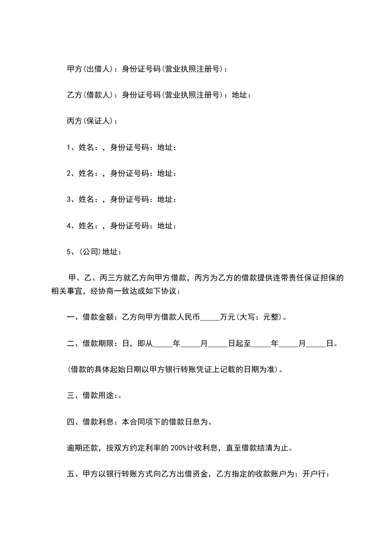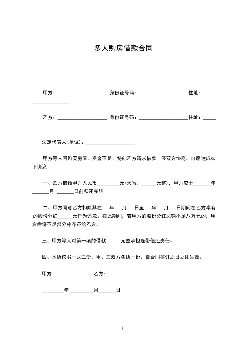 十、自合同签订之日起生效,合同一式五份,甲方执一份,乙方四人各执一份,合同文本具有同等法律效力。贷款方:借款方:电话:贷款人电话:另附:借款人身份证复印件。借款日期: