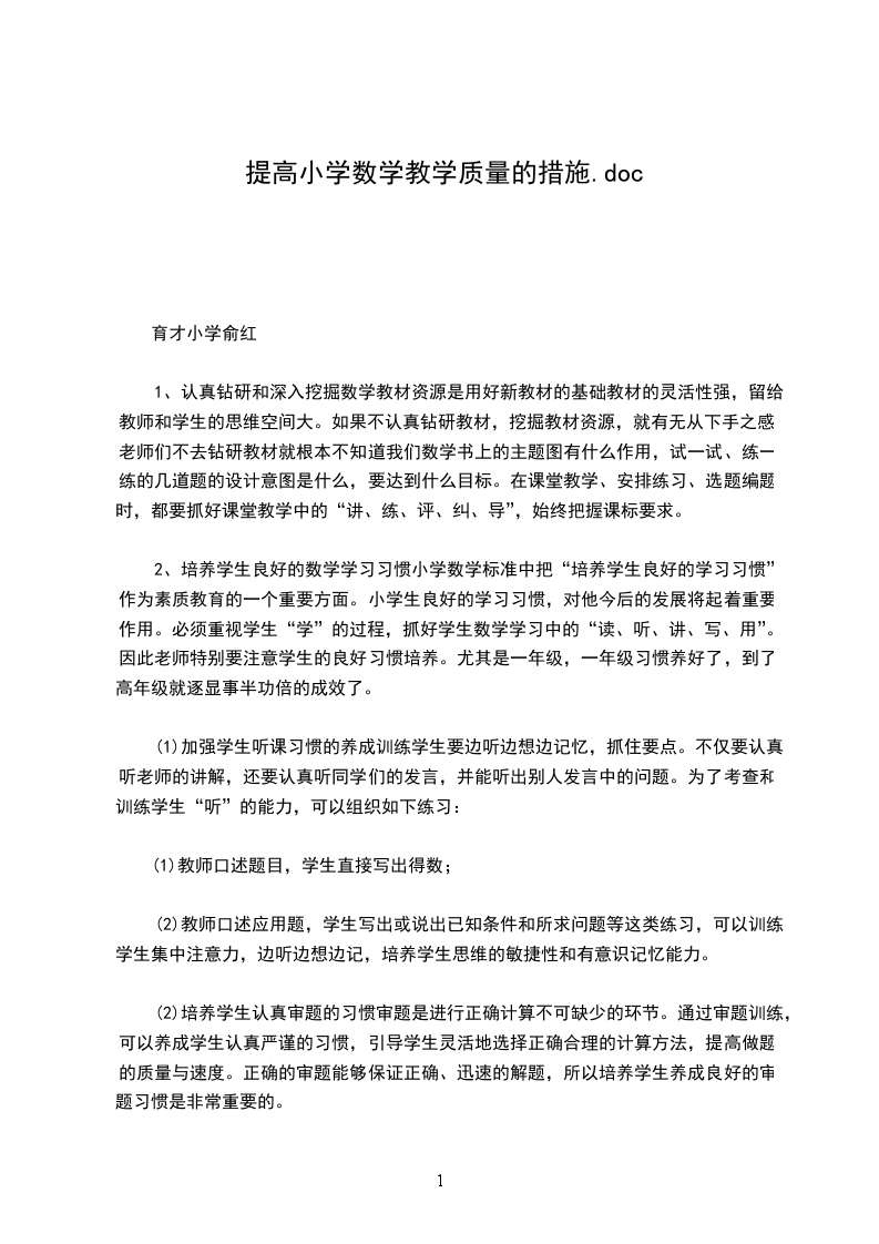 右二坝小学提高教育教学质量的措施办法在学区的统一安排和部署下,我校认真组织教师讨论了如何提高教学质量的措施办法。大家一致认为重点是工作作风和思想观念的转变,全校教师要以提高课堂教学质量为目的,加强课外辅导,做好家访工作、开好家长会,动员家长抓学生家庭作业的积极性,形成学校、家庭、老师、学生“四位一体”的质量模式,就一定会提高我校的教学质量。、我校教育教学工作中存在的问题。