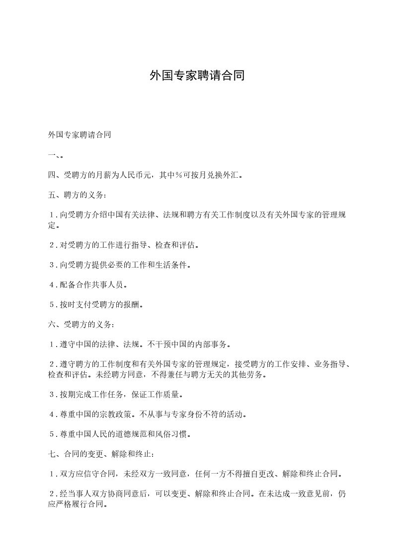 外国专家聘请合同