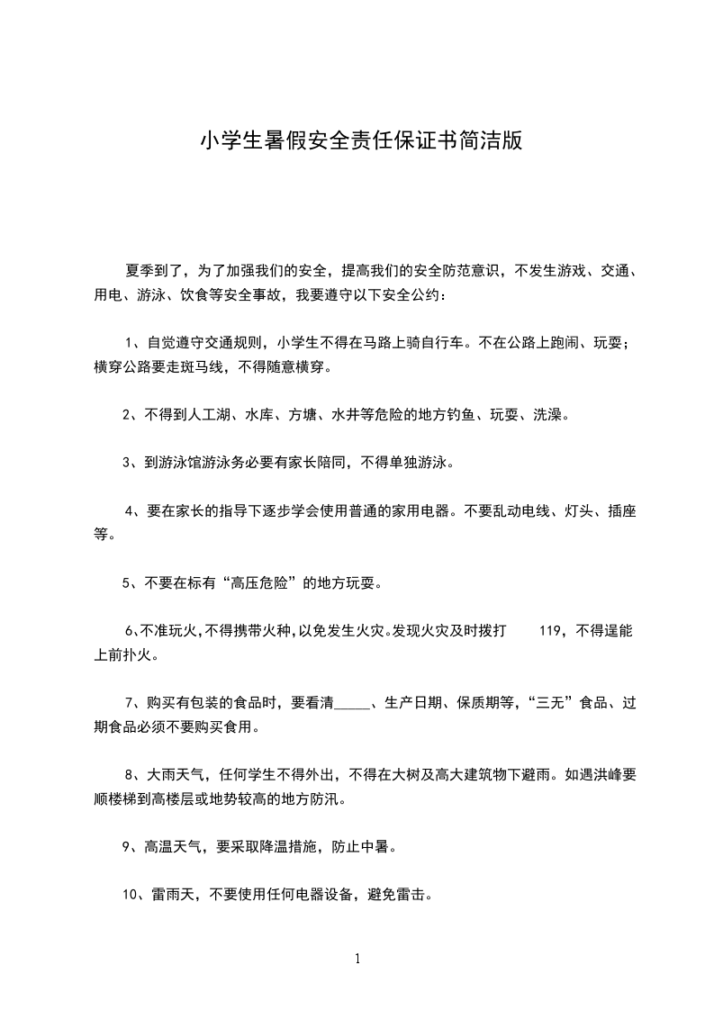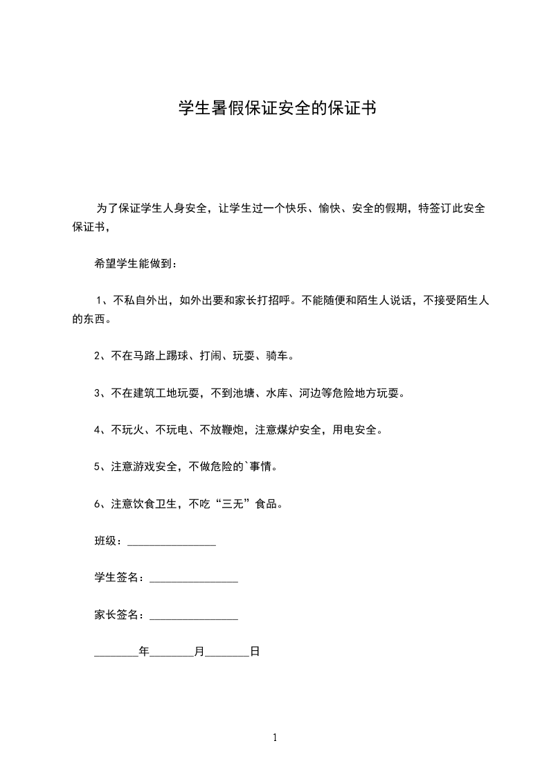 为了度过一个安全的暑假,我向学校及老师做如下保证: