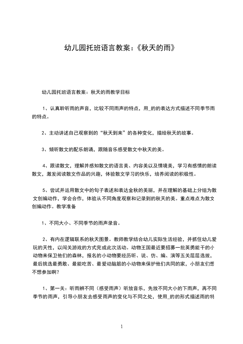 幼儿园托班语言教案:秋天的雨教学目标