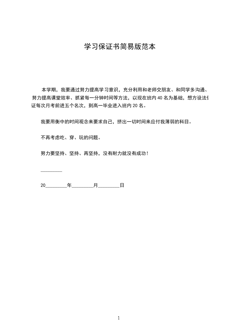 本学期,我要通过努力提高学习意识,充分利用和老师交朋友、和同学多沟通、努力提高课堂效率、抓紧每一分钟时间等方法,以现在班内40名为基础,想方设法保证每次月考前进五个名次,到高一毕业进入班内20名。
