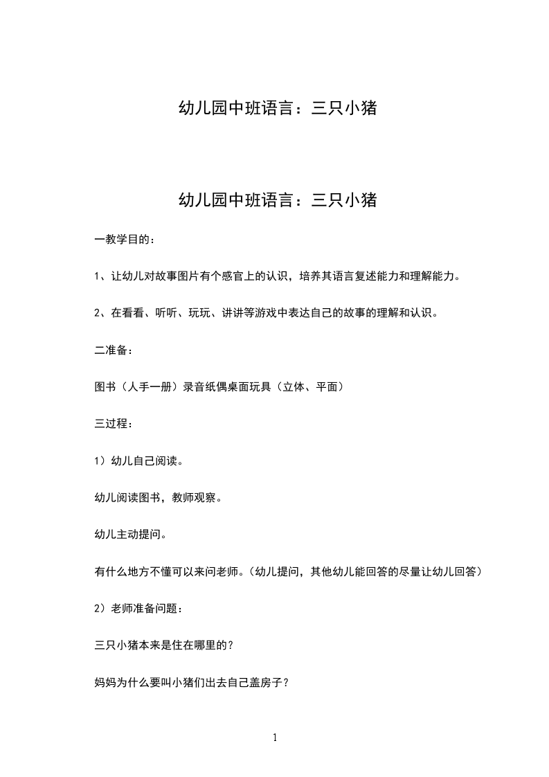 三、讲故事小猪迷路了:在图书馆,每个人都在安静地看书,正正也在认真地看书。突然,他听到一个小小的声音说:“我要回家!请你帮助我,好吗?”正正吓了一跳,仔细一看,原来是一只小猪在说话。奇怪,图书馆里竟然出现了一只小猪!就在这时,另一只小猪又大声地说:“快带我们回家!”正正吓得用双手捂住了耳朵。原来,这两只小猪是从图书里掉下来的,它们迷路了,找不到自己的图书,希望正正能帮助它们回家。于是,正正在图书架上拿出一本有狼的书,问:“这本书是你们的家吗?”小猪见到狼,惊慌地说:“不是。”正正又拿出一本有关小猪盖房子的图书,问:“这本书是你们的家吗?”小猪摇摇头说:“不是。”正正再找来一本关于飞天小猪的图书,问:“这本书是你的家吗?”小猪失望地回答说:“不是。我们的家叫猪戏团。”突然,另一只小猪从一本书中探出头来,说:“你们快跟我回家吧!表演要开始了。”三只小猪手拉手,转呀转,消失了。正正打开猪戏团,看见小猪们已经回到家里了。