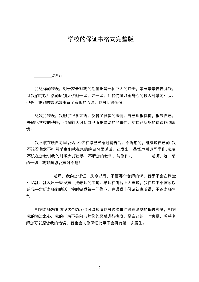 _________老师,我向您保证,从今以后,不管哪个老师的课,我都不会在课堂中捣乱、乱发出一些怪声、接老师的下句、老师在讲台上大声说,我在底下小声说以后我一定听老师们的话,按时完成每一门作业,在课堂上保证认真听课,不惹老师生气!