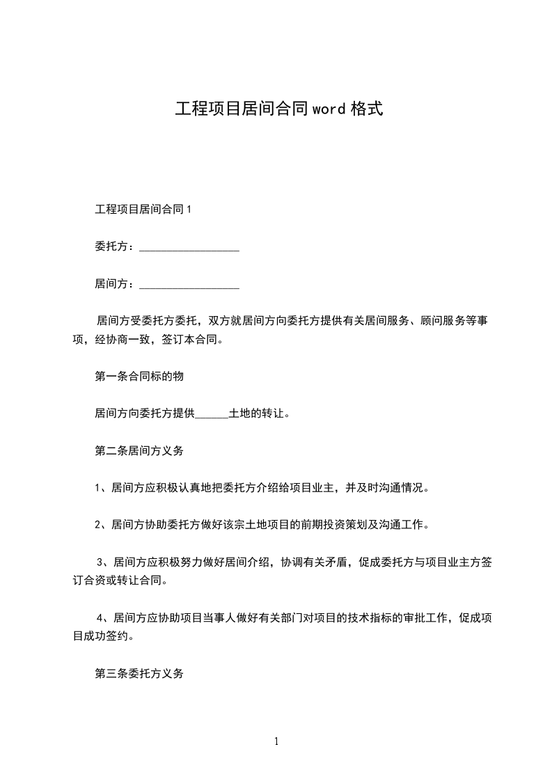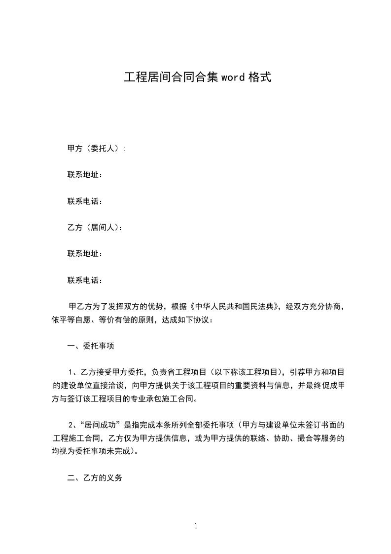 一、甲方委托乙方联系______工程合同完成后,乙方以完成委托事宜。