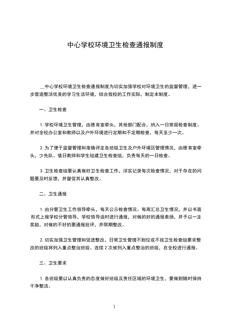 __中心学校环境卫生检查通报制度为切实加强学校对环境卫生的监督管理,进一步营造整洁优美的学习生活环境,结合我校的工作实际,制定本制度。