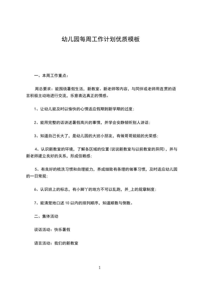 三、教学进度表:时间、活动内容、活动目标、备注第一周