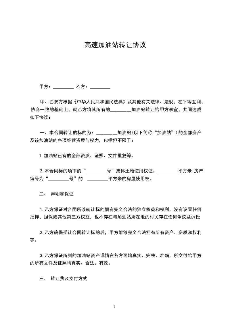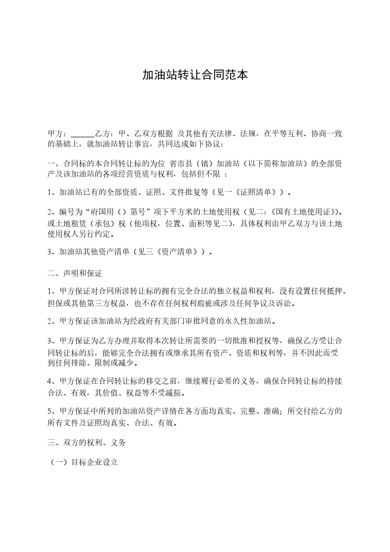 本合同转让的为:的加油站(以下简称“加油站”)的全部资产及该加油站的各项经营资质与权力,包括但不限于: