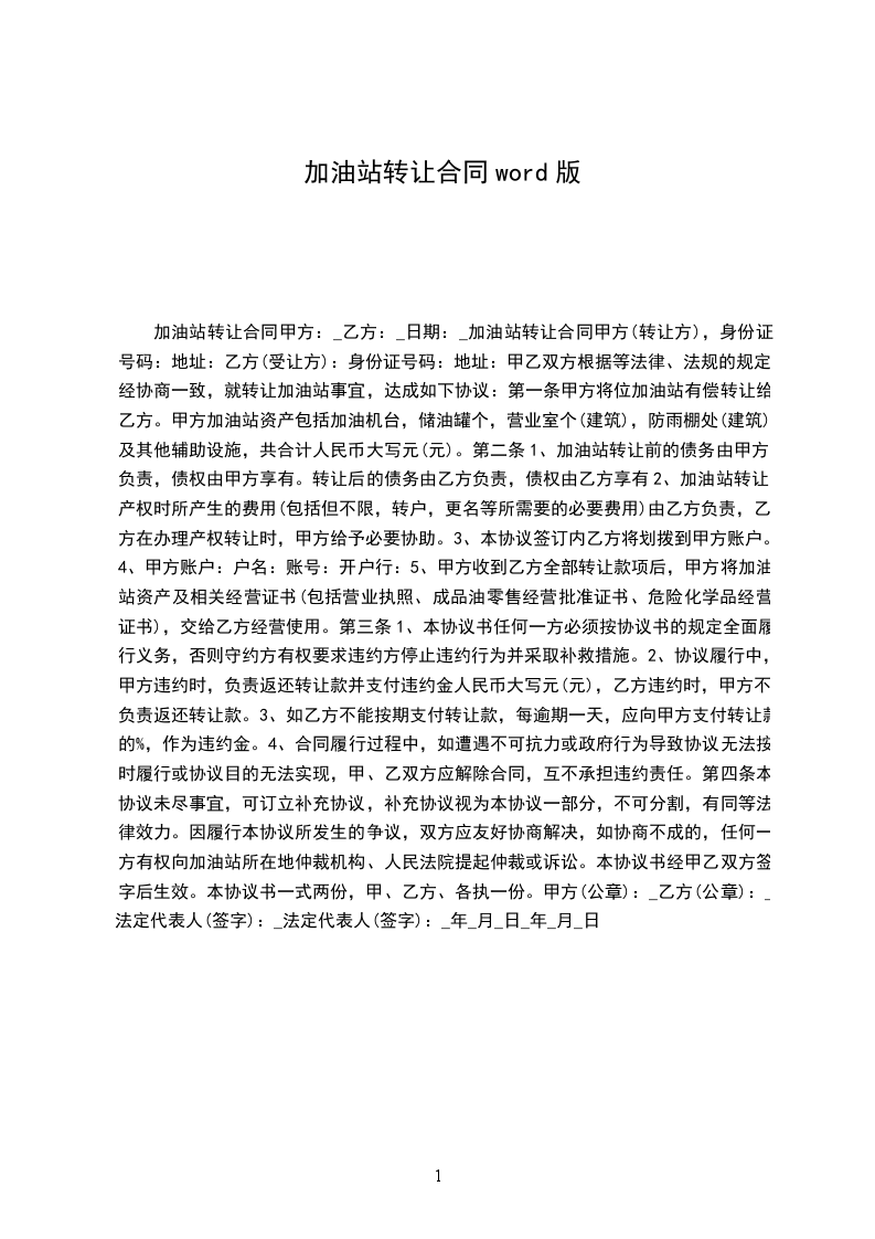 乙方系加油站投资人、所有权人,经双方协商,达成以下转让协议: